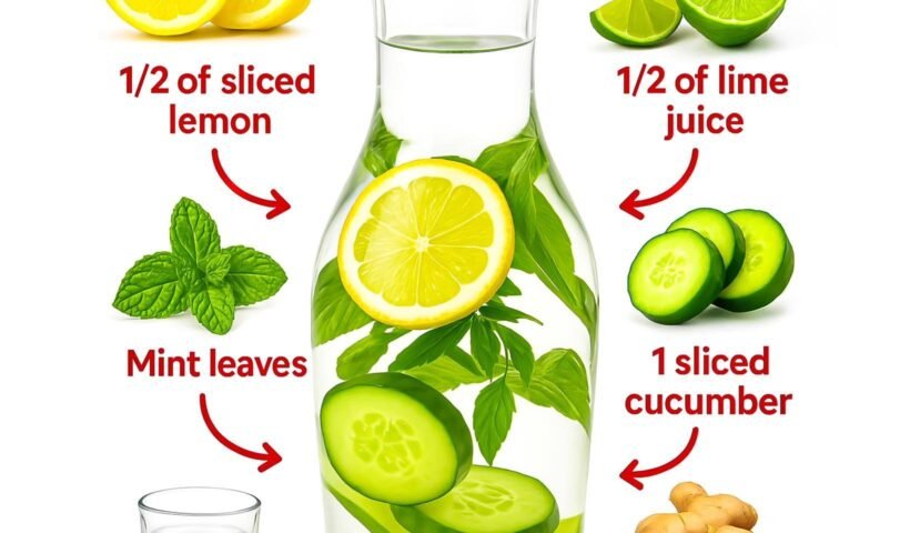 Wash all produce thoroughly. Slice the lemon and cucumber into thin rounds. Add everything to a large pitcher or jar. Pour in cold water and…